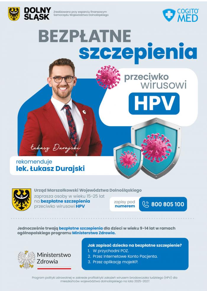 Rozpoczęła się kolejna edycja działań w ramach projektu: "Program polityki zdrowotnej w zakresie profilaktyki zakażeń wirusem brodawczaka ludzkiego (HPV) dla mieszkańców województwa dolnośląskiego na lata 2025 – 2027"