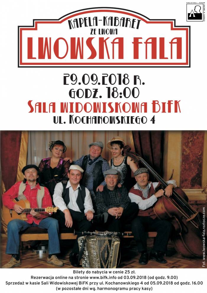 Biblioteka i Forum Kultury w Oleśnicy zapraszana na występ kapeli - kabaretu Lwowska Fala, który odbędzie się 29 września o godz. 18:00 w Sali widowiskowej BiFK
