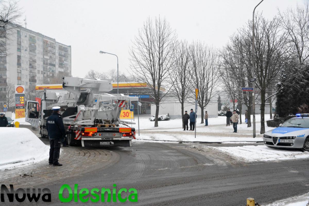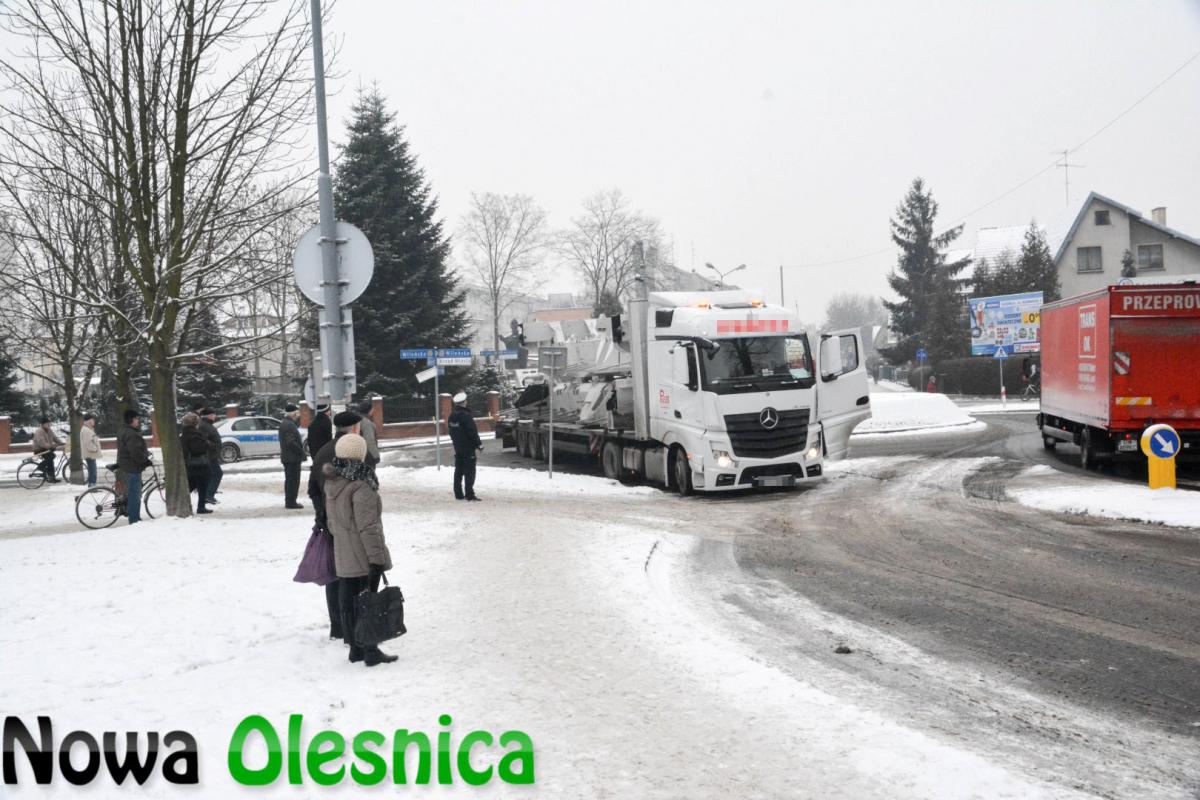 Ciężarówka zablokowała częściowo rondo