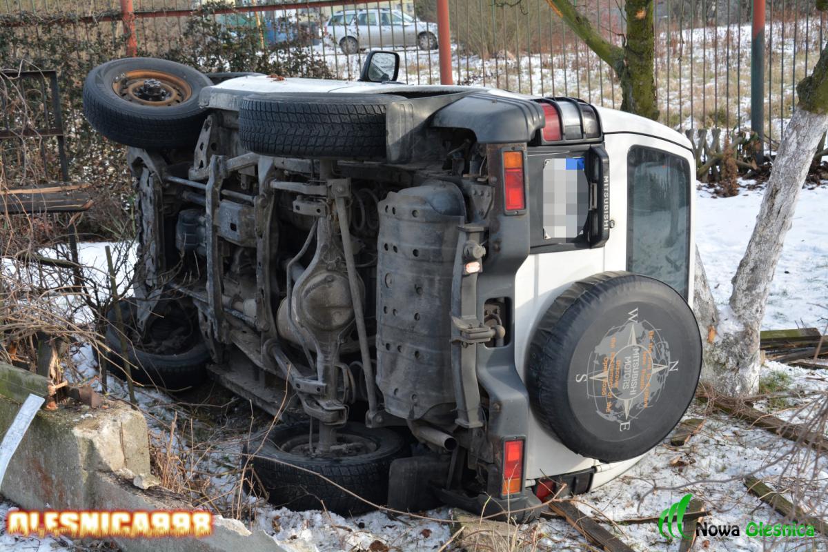 Dzisiaj, po godzinie 12:00 na ulicy Wiejskiej doszło do zdarzenia drogowego. Terenowe mitsubishi wypadło z drogi i staranowało płot posesji. Na miejsce został skierowany patrol policji, który ukarał kierowcę mandatem karnym. Nikomu nic się nie stało a ruch odbywał się bez utrudnień. Jak udało nam się dowiedzieć do zdarzenia miało dojść gdy kierujący terenówką pokonywał łuk drogi, wtedy miał wpaść w poślizg a następnie uderzyć w płot. Ostatecznie zakończył jazdę na boku na terenie przydrożnej posesji.