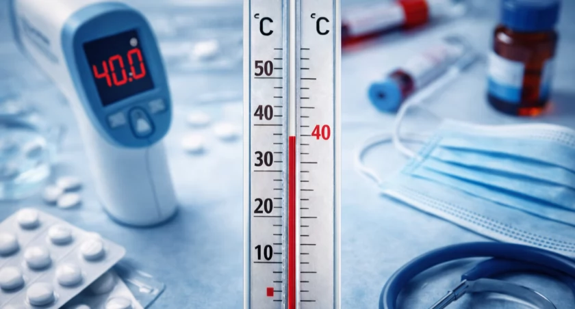 - wysoka gorączka (często powyżej 39°C), trudna do obniżenia
