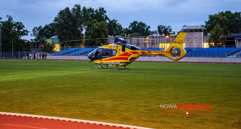 Dziś około godz. 21:00 śmigłowiec Lotniczego Pogotowia Ratunkowego został zadysponowany do Oleśnicy, aby przejąc poszkodowanego 39-letniego mężczyznę, który doznał poparzeń ciała pierwszego i drugiego stopnia. Śmigłowiec wyladował na płycie oleśnickiego boiska przy ul. Brzozowej.
