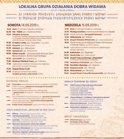 Już jutro rusza XI Jarmarku Produktu Lokalnego oraz XI Przeglądu Zespołów Folklorystycznych Dobrej i Widawy, którego organizatorem jest Lokalna Grupa Działania Dobra Widawa.