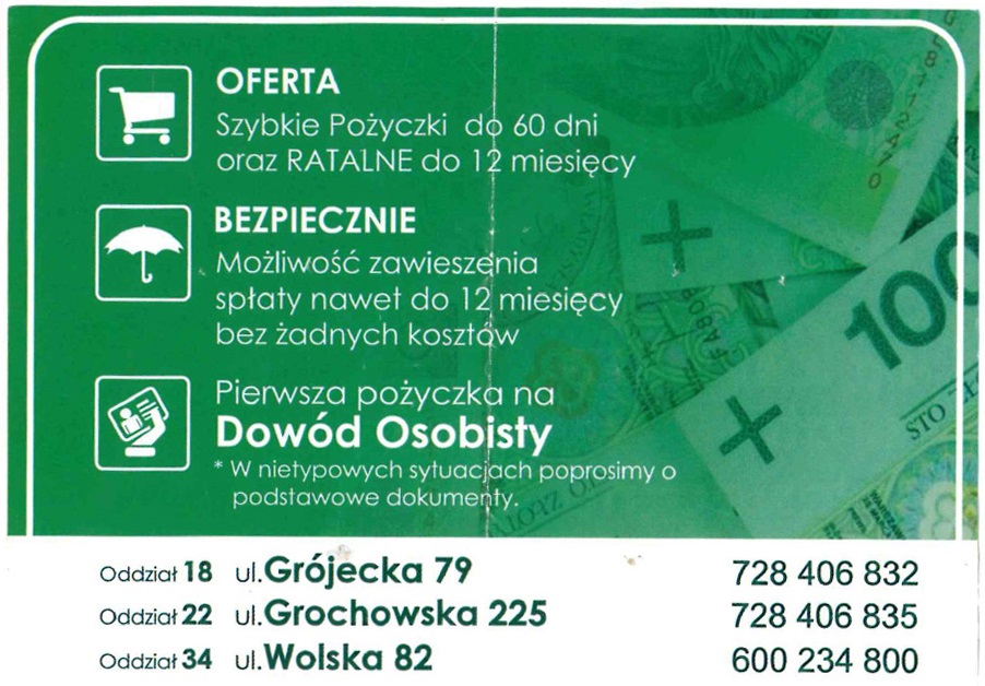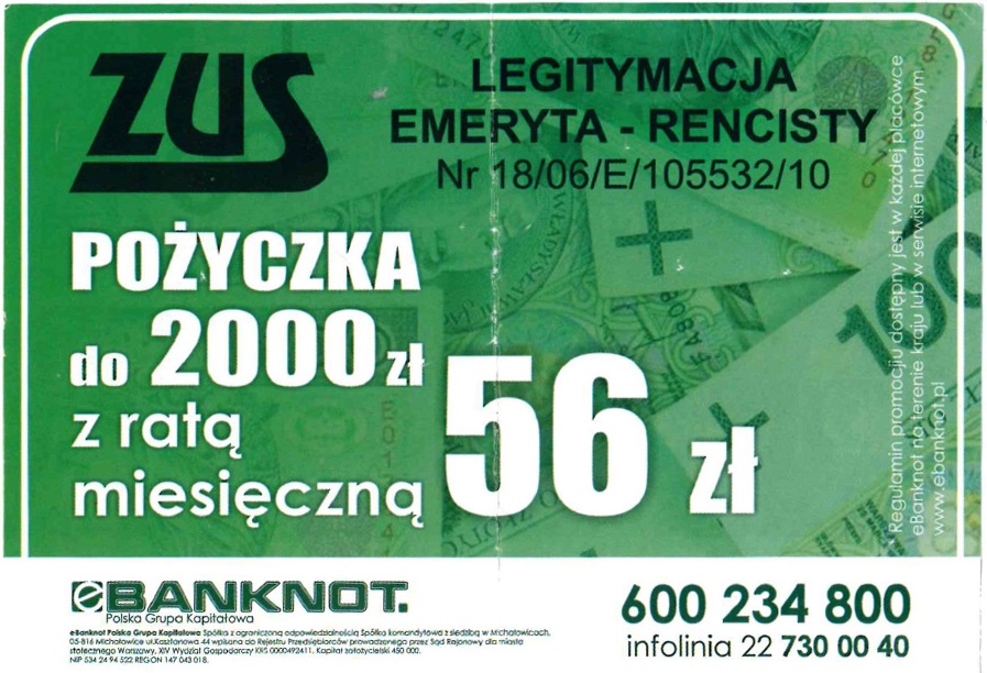 Ulotki przypominające swoim wyglądem ZUS-owską legitymacje emeryta wprowadzają w błąd polegający na przekonaniu, że pożyczkę można otrzymać z ZUS.