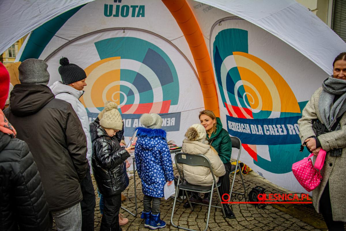 Galeria zdjęć z Oleśnickiego Jarmarku organizowanego podczas finału Wielkiej Orkiestry Świątecznej Pomocy. Wolontariusze, koncerty, licytacje, konferencja prasowa i wiele innych atrakcji, które miały miejsce na ulicach miasta. Atmosfera życzliwości i wsparcia dla onkologii i hematologii dziecięcej w Miejskim Ośrodku Kultury i Sztuki.