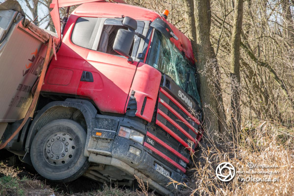 Strzelce - ciężarówka w rowie